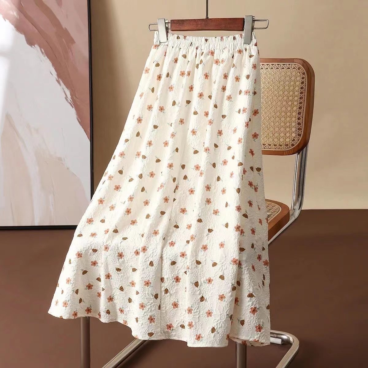 レディース ロングスカート 春夏 プリーツ チュールスカート ハイウエスト 通勤 薄手 可愛い 花柄 杏色 ブラック S M L XL 2XL SLKA010