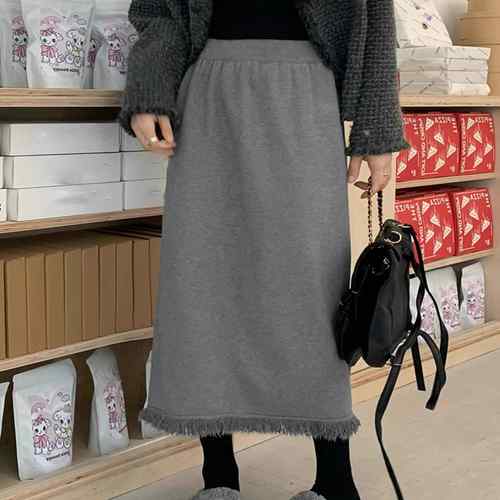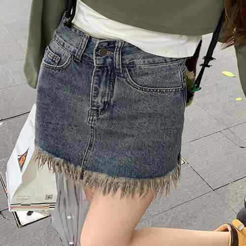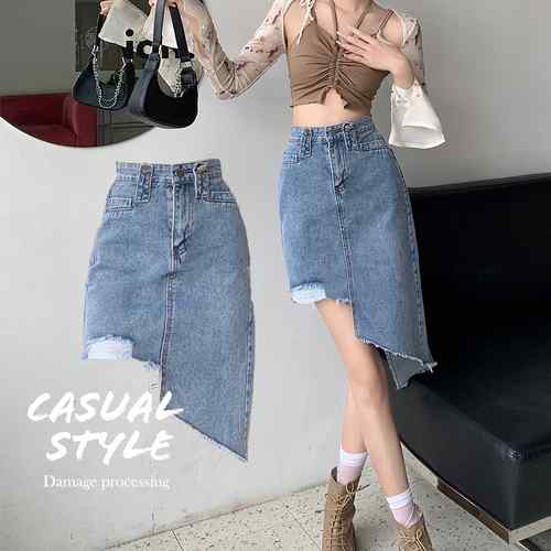 夏 Aライン タイト美ライン 韓国風 ハイウエスト ボトムス 裾フリンジ 美脚 脚長 セクシー 大人 カジュアル 膝丈不規則スカート ダメージスカート 台形スカート 人気