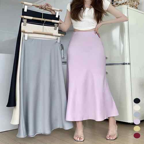 とろみスカート 光沢感 エレガントロングスカート 春夏フレアスカート オフィスカジュアル きれいめボトムス 大人かわいい 高見え スカート黒 フェミニン お洒落 韓国ファッション