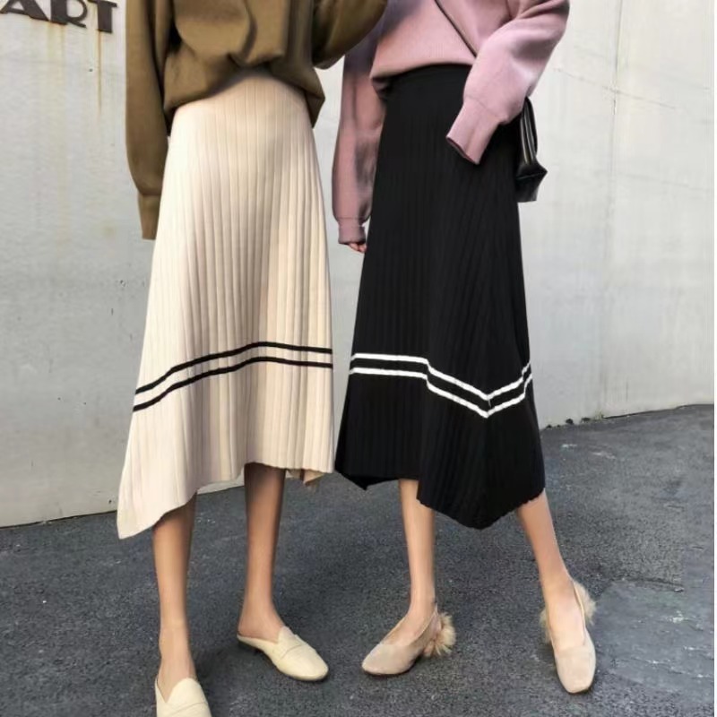 レディース ニットスカート ロング 秋冬 通勤 ハイウエスト 可愛い ブラック 杏色 S M L XL 2XL SLKA028