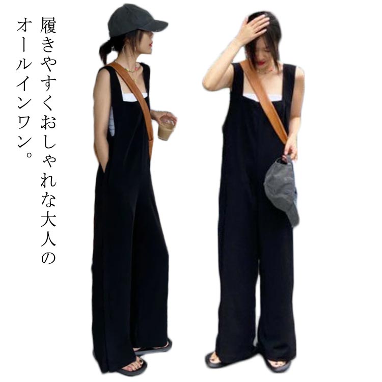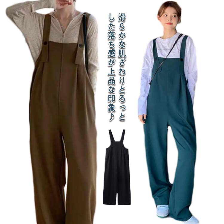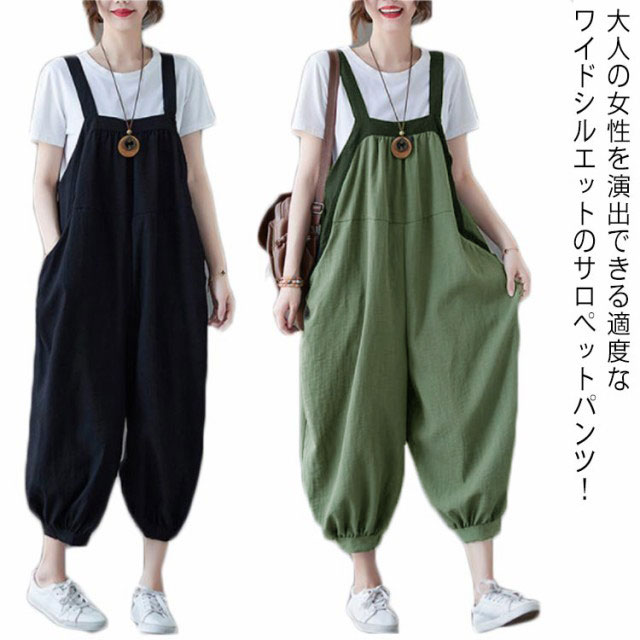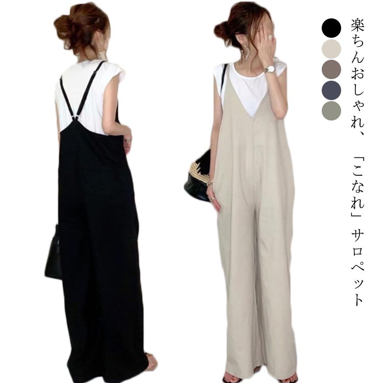 ストンと落ちるシルエットが魅力的♪ オールインワン 着痩せ ゆるパンツ サロペットパンツ カジュアル