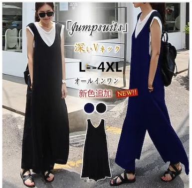 サルエル オールインワン お洒落 体型カバー 大きいサイズ ポケット付きレディースファッション オールインワン サロペット