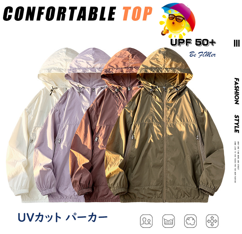 薄手 上着 服 トップス uvカット パーカー UVケア フード付き カジュアル 薄手 夏春秋 無地 軽さ ゆったり メンズ