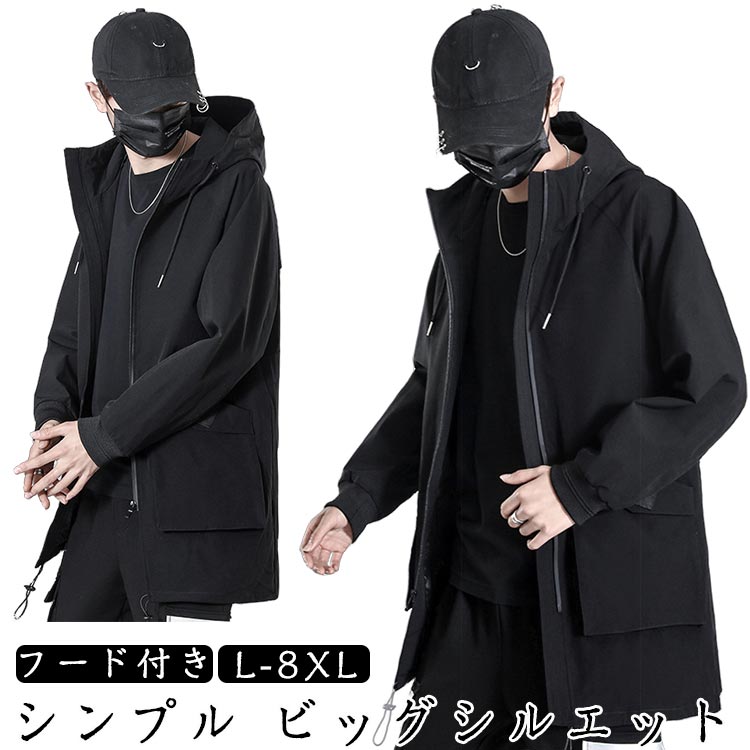 アウター トレンチコート ジップアップ 大きいサイズ 無地 スプリングコート パーカー フード付き ハイネック シルエット シンプル 大きめ 9 メンズ カジュアル 長袖