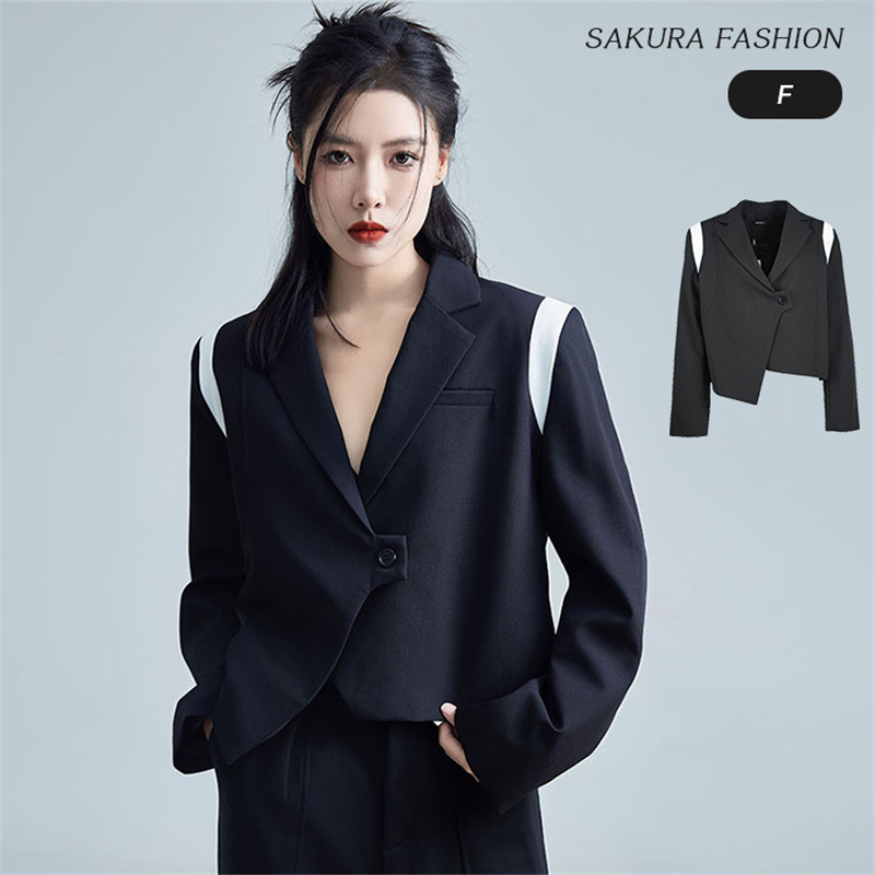 ジャケット レディース トップス 羽織り テーラード 長袖 長そで ショート丈 ゆったり 上品 春秋 切り替え 個性派 ショートジャケット