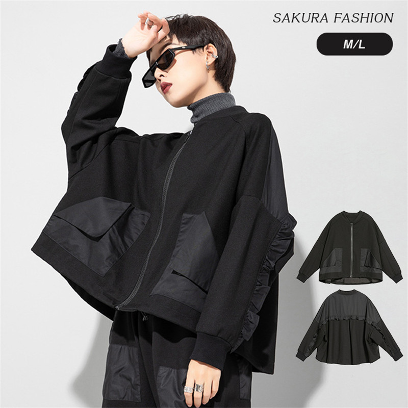ブルゾン レディース フリル アウター ジャケット ジャンパー 大きいサイズ ゆったり 秋冬 オーバーサイズ -1