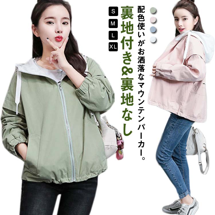 マウンテンパーカー レディース 春 秋 薄手 アウター ブルゾン ショート丈 パーカー 長袖 大きいサイズ