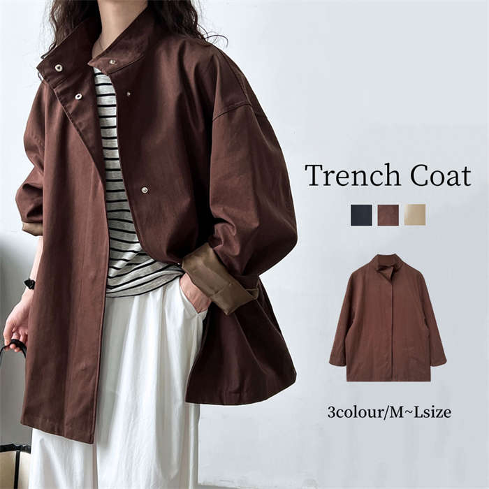春の新作 スタンドカラー ボリュームスリーブ トレンチコート Trench Coat ベージュ ブラック 黒 コーヒー色 春秋 入学式 卒業式 入園式 卒園式 お呼ばれ ママ 母 ビジネス ♪