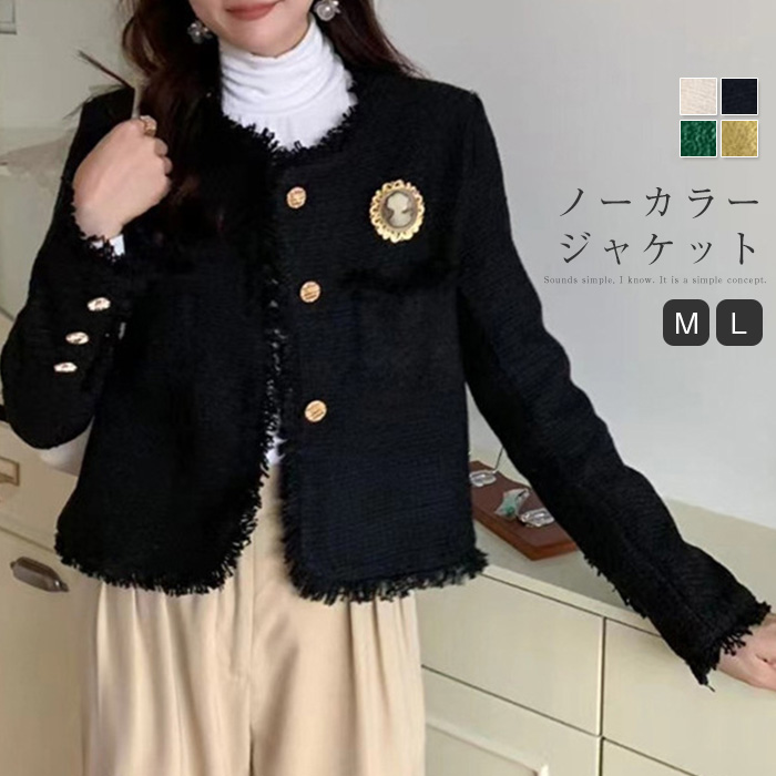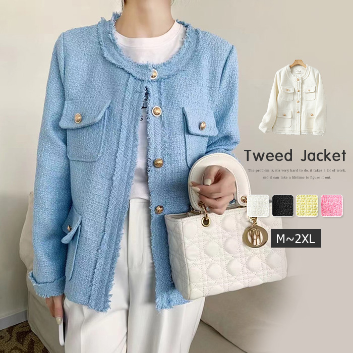 これから季節に着回し ツイードノーカラージャケット S.M.L.XL.2XL 20代 30代 40代 50代 Tweed jacket