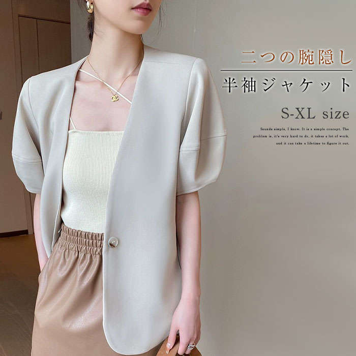 レディース テーラードジャケット 薄手 半袖 おしゃれ オフィス ゆったり シンプル 無地レディースファッション コート ジャケット