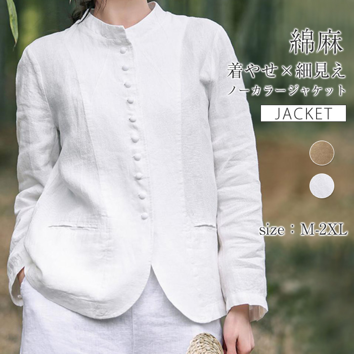 ジャケット 羽織り アウター 長袖 綿 麻 着痩せ カーディガン ノーカラー 羽織り フォーマル オフィス おしゃれ 無地 体型カバー シンプル カジュアル 卒業式 入学式 普段着