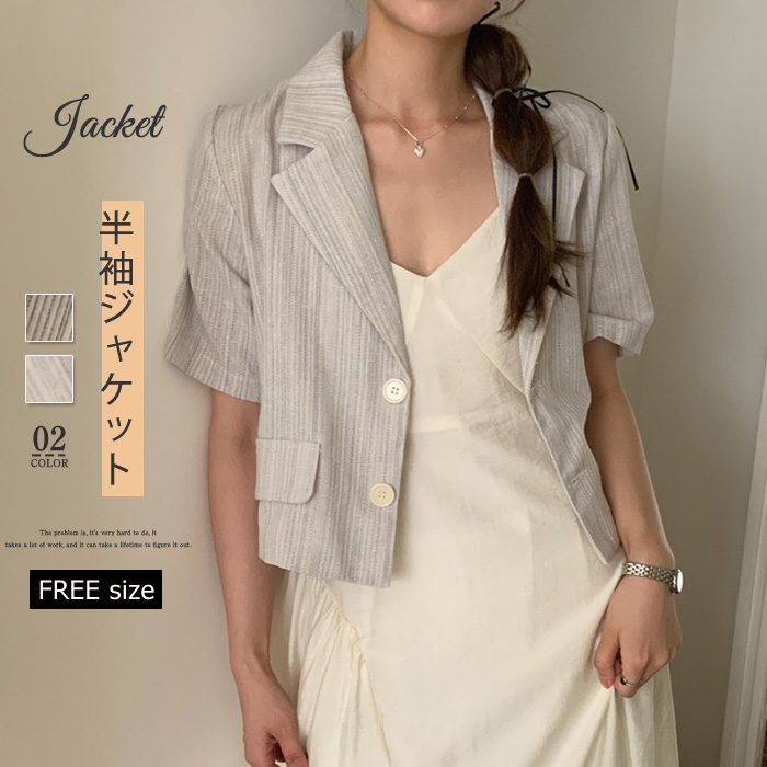 テーラードジャケット レディース スーツ アウター シンプル 上品 フェミニン フリーサイズ ストライプ柄 カット ショート丈 謝恩会 披露宴 お呼ばれ お食事会♪