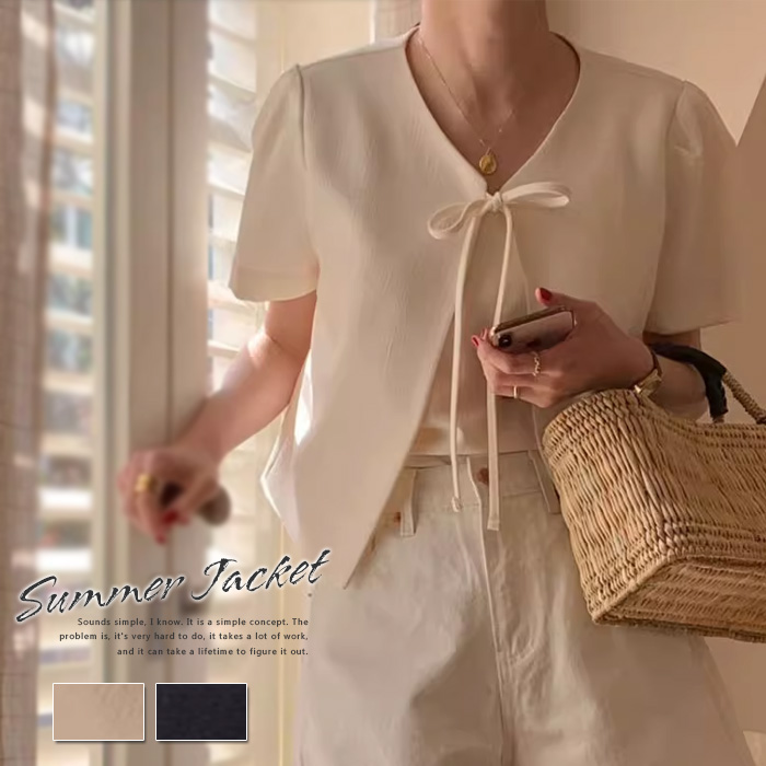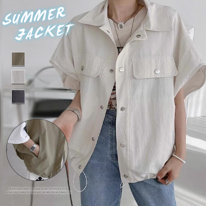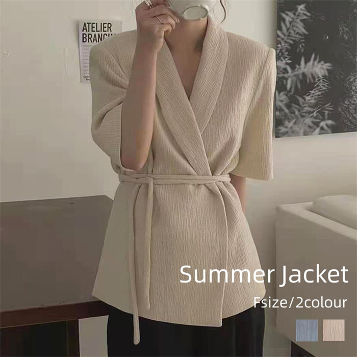 薄手 半袖 サマージャケット 着痩せ スリム カジュアル 上品レディースファッション コート ジャケット