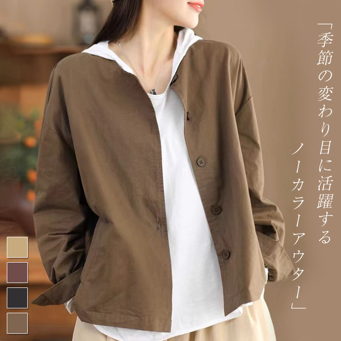 アウター レディース 春 ショート丈 夏 薄手 ノーカラー 長袖 スプリングコート コート カーディガン フードなし 大人 ゆったり 楽ちん リラックス シンプル カジュアル きれいめ お洒落 体型カ