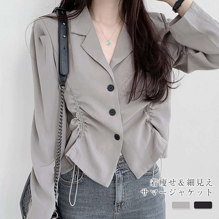 ジャケット シアートップス トップス カットソー ボリュームスリーブ 羽織り ライトアウター 丸首 おしゃれ カジュアル きれいめ こなれ シンプル 抜け感 着回し 着痩せ アウター