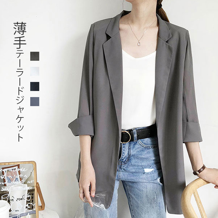 柔らかく肌触りの良い生地薄手テーラードジャケット。20代 30代 40代 50代 60代 きれいめ 会社 ビジネス 二次会 お呼ばれ フォーマル 上品 おしゃれ 夏 オシャレ 大人