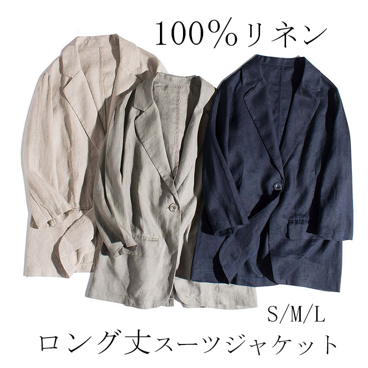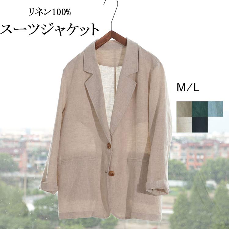 100%麻カジュアルテーラードジャケット ゆったり 折襟 リネン ジャケット フォーマル カジュアル 長袖 羽織り 綿麻ジャケット 上品 おしゃれ 春夏 30代 40代 50代
