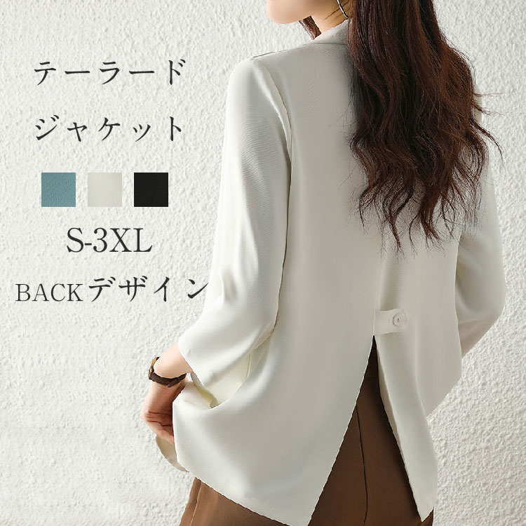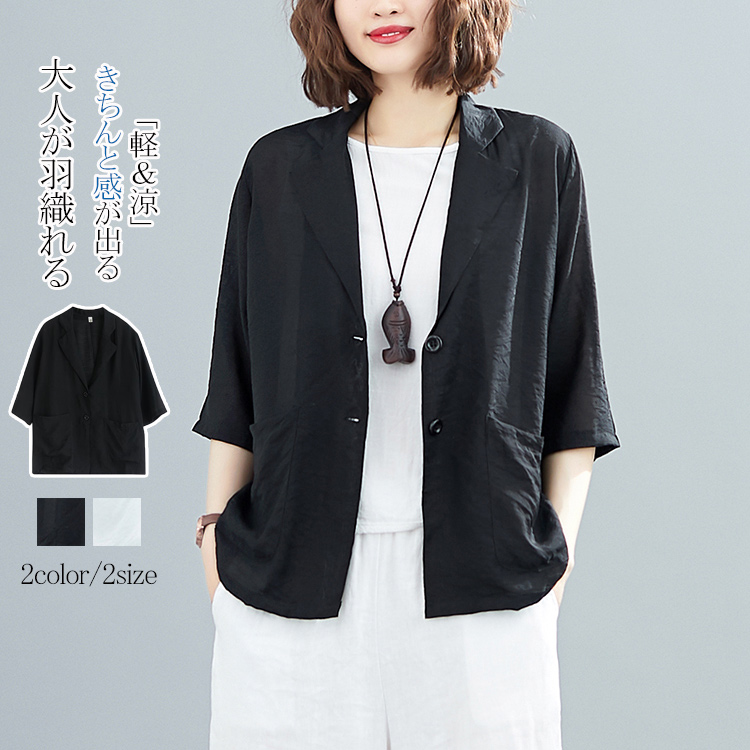 テーラードジャケット サマージャケット 大きいサイズ レディース ジャケット 白 トップス テーラード ポリエステル ママスーツ スリット 冷房対策 アウター ブラック ホワイト
