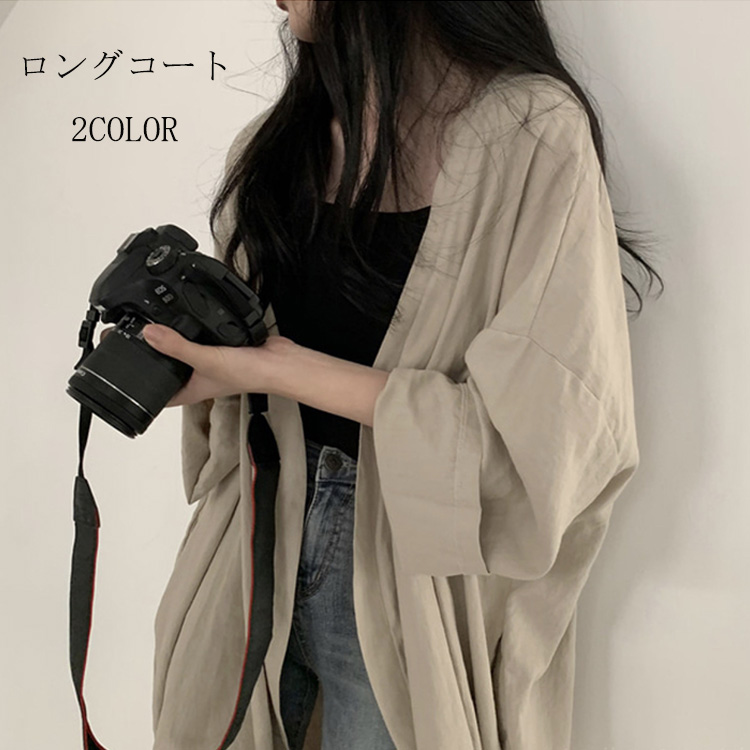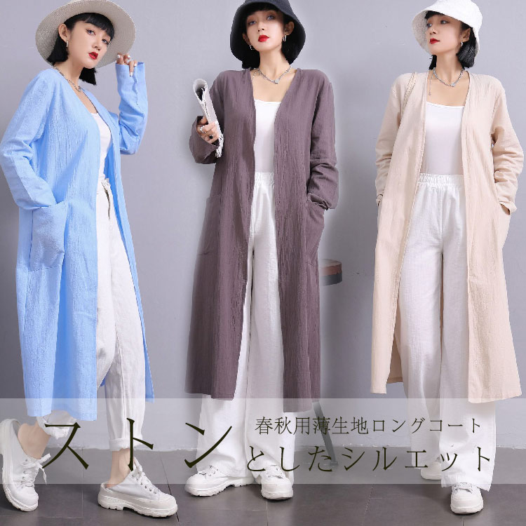 綿麻風ロングシャツ 羽織りシャツ ロングカーディガン カーディガン シャツ アウター コート カジュアル 抜け感 ロング羽織 Vネック ノーカラー コーデ