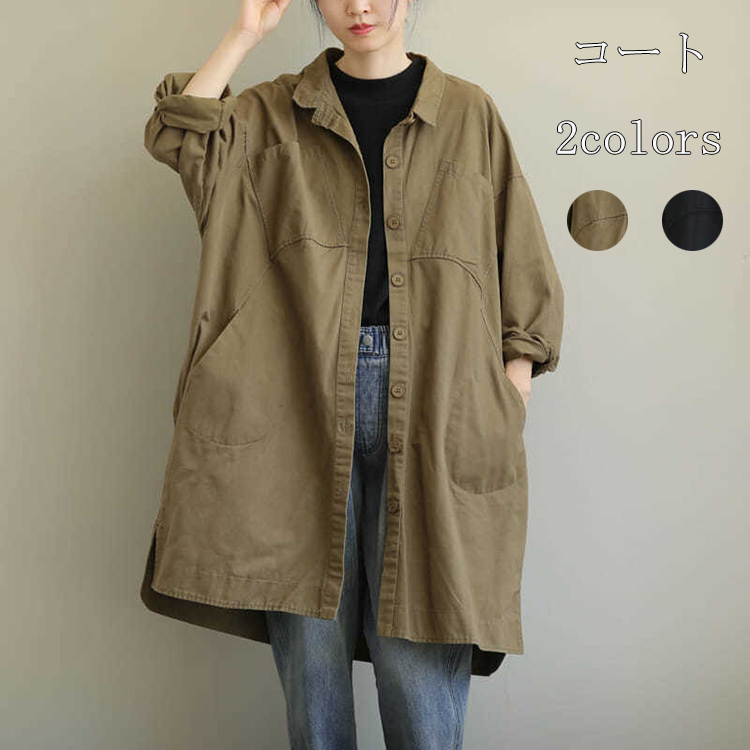 コート ロングコート トップス レディース 春秋 長袖 アウター 開襟 コート 大きい袖口 ポケットづき 前開き カジュアル カジュアル ゆったり ふんわり