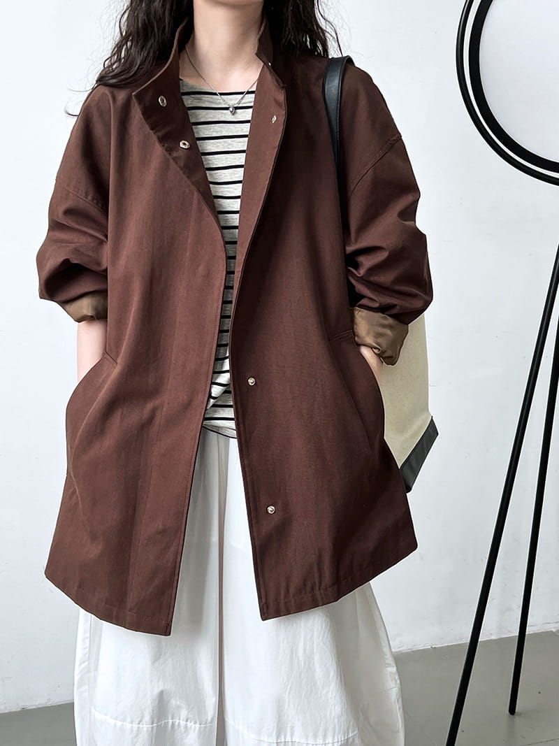 春アウター ロング丈 チュニック オ 上品 着痩せ カジュアル風 シンプル 綿 コットン ゆったり 体型カバー エレガント き カジュアル 裏付き 通勤 通学