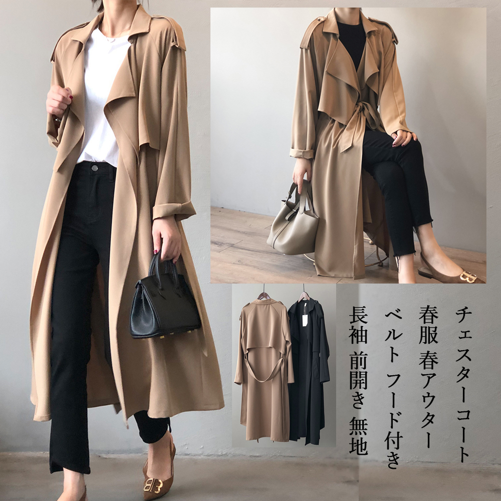 春アウター ロング丈 チュニック オ 上品 着痩せ カジュアル風 シンプル 綿 コットン ゆったり 体型カバー20代 30代 40代 50代