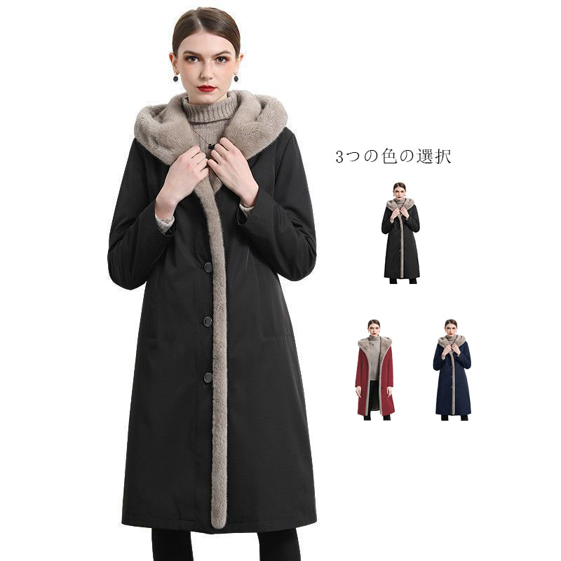 エコファー ファー ロングコート レディース ロングアウター コート ロング ビッグシルエット アウター フード ブラック