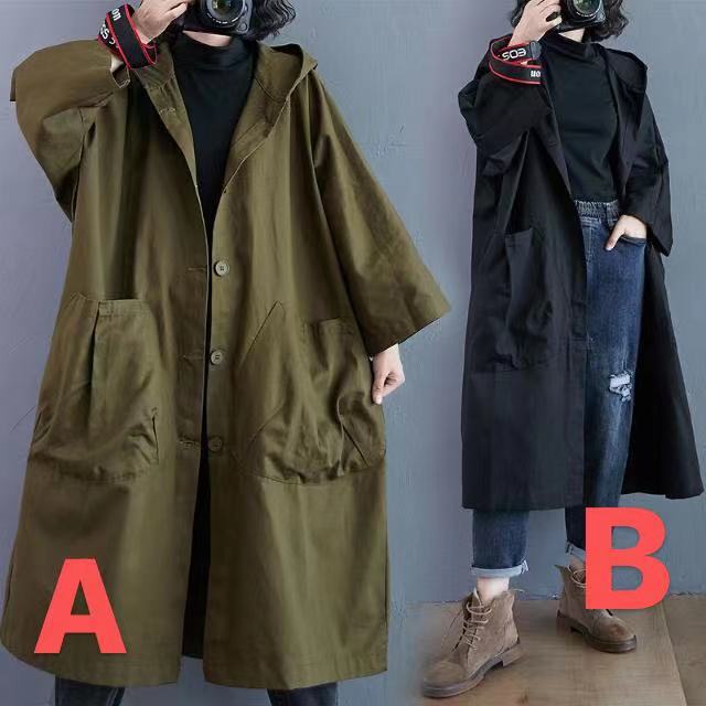 レディース ロングコート 春秋 ゆったり 大きいサイズ フード付き パーカーレディースファッション コート ジャケット
