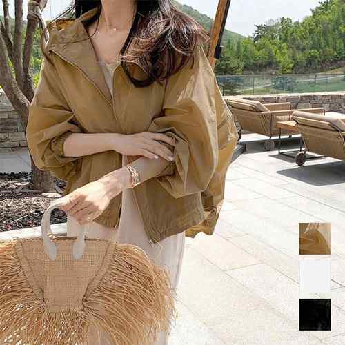 軽アウター レディース 薄手夏ジャケット ドロップショルダー ライトジャケット サマーカーディガン ゆったり カジュアル バルーンスリーブ黒 フード付トップス秋 アウター夏UVケア