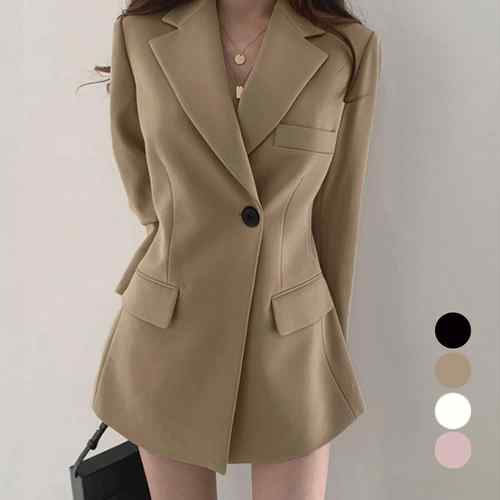 スーツジャケット オフィス 無地 韓国ファッション ポケット付きライトアウター 大人上品スーツ 上着 20代30代40代 春アウター長袖通勤 体型カバースーツ黒 オフィスカジュアル
