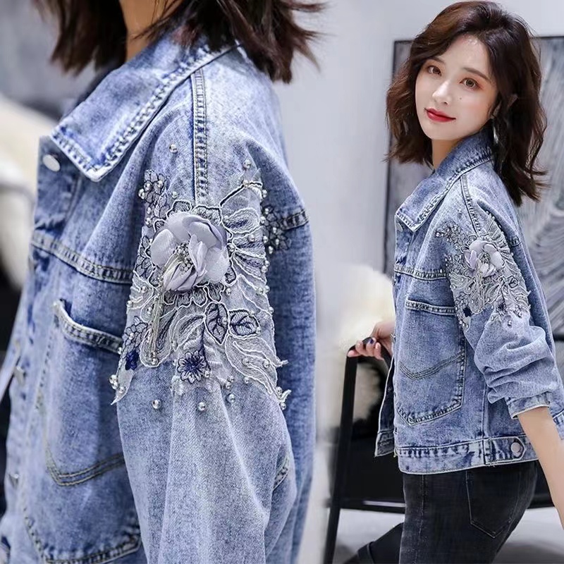 アウター レディース 春秋 Gジャン ショットコート ゆったり 通勤 カジュアル デニム トップス 長袖 可愛 花柄 S M L XL 2XL 3XL SLCB014