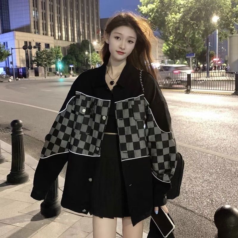 レディース デニムコート ジャケット アウター チェック柄 春秋 ゆったりレディースファッション コート ジャケット