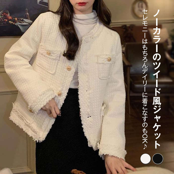 ジャケット レディース セレモニー 入学式 ツイード風黒 フォーマル 白 単品 春 卒園式 入学式 入園式 面接 ジャケット おしゃれ カジュアル オフィス 洗える 説明会 結婚式 通勤 ママ 20代