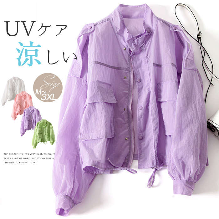新作 シワ加工~ 接触冷感 シアージャケット 大きいサイズ ~3 グリーン ピンク ホワイト パーブル 緑 白 プレゼント 贈り物 ギフト 母の日 紫外線カット 冷房対応 ♪