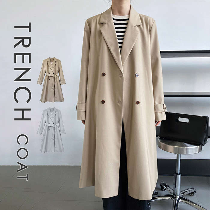 Trench coat 春秋の ロング丈トレンチコート ♪レディースファッション コート ジャケット