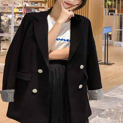 通勤ライトアウター 韓国風 ダブルブレストジャケット ポケット付き軽アウター 体型カバー上着 20代30代40代 春夏秋 ゆったりジャケット 羽織り着やせ 無地 オフィスジャケット