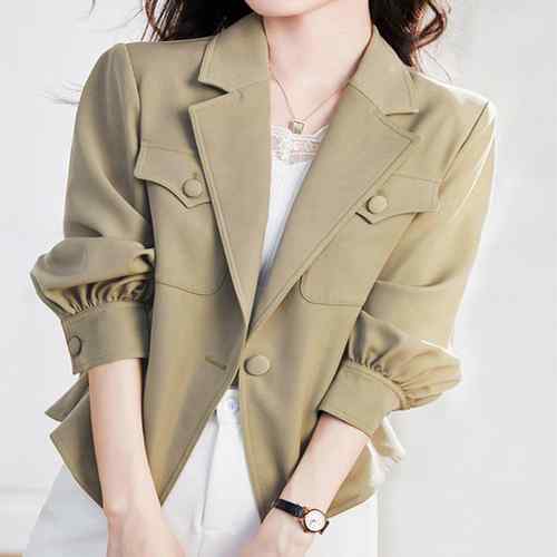 韓国 おしゃれライトアウター オフィス通勤着 胸前ポケット付き スーツジャケット 大人上品 ショートジャケット軽アウター カジュアルきれいめ ビジネススーツ フォーマルウェア春