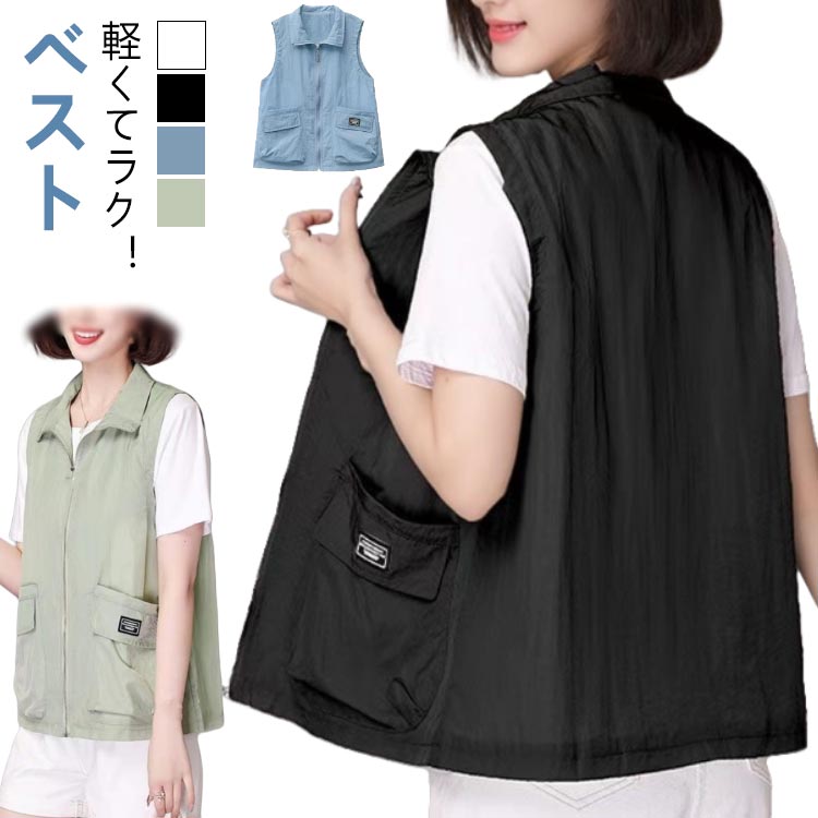 30代 夏用 薄手 旅行 コンパクト ポケット ファスナー 40代 スポーツベスト 裏地 春 夏 秋 お出掛け 秋 薄い 軽量