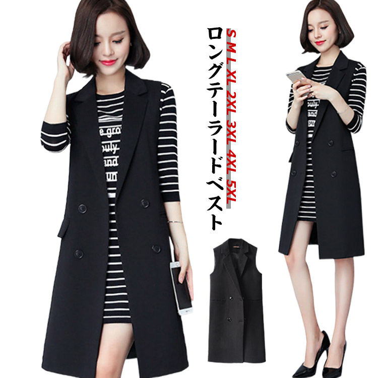 ロングジレ ジレ ロング ベスト レイヤード トップス 大きいサイズ アウター レディース コート 羽織り トップス