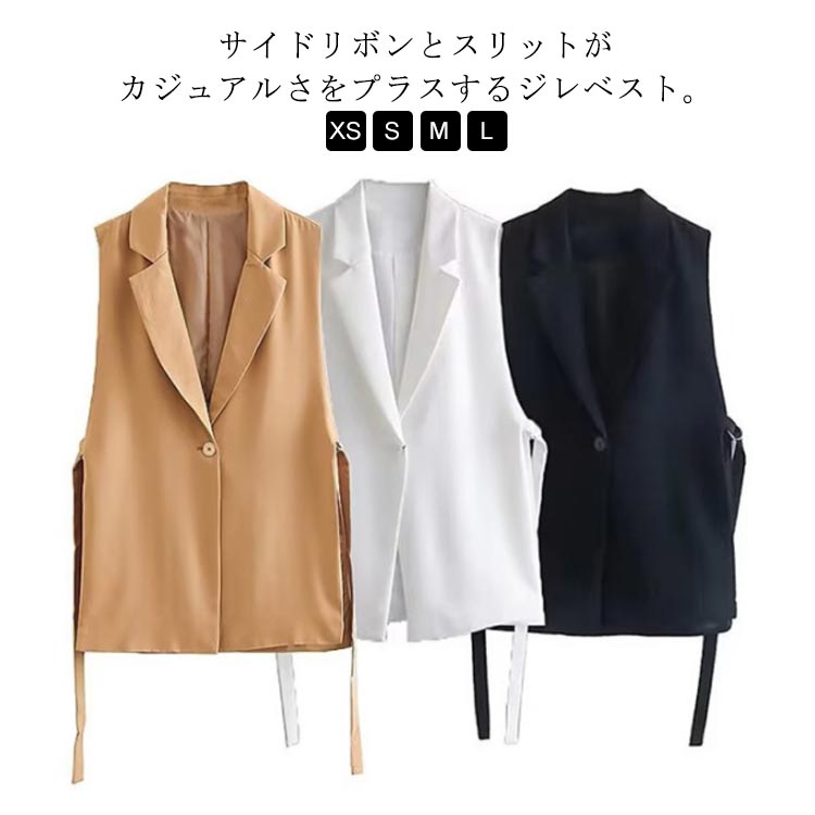 脇スリットとベルトで抜け感をプラス カジュアル ベスト 韓国ファッション 春夏 秋服 テーラードベスト