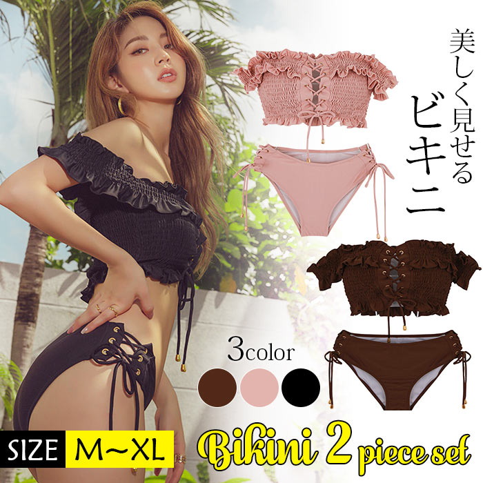 ビキニ レディース オシャレ セクシー ビキニ ショーツ綺麗 可愛い水着ビキニ 下着 韓国 半袖 ストレッチ 紐付き ビキニ 体型カバー無地 黒 ピンク コーヒー M-2XL