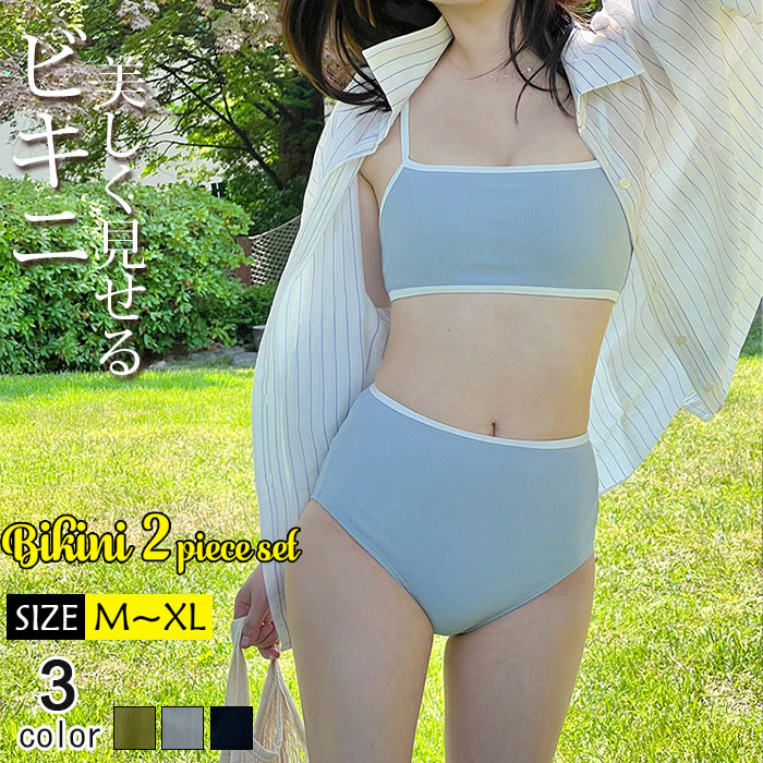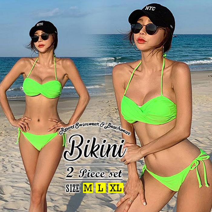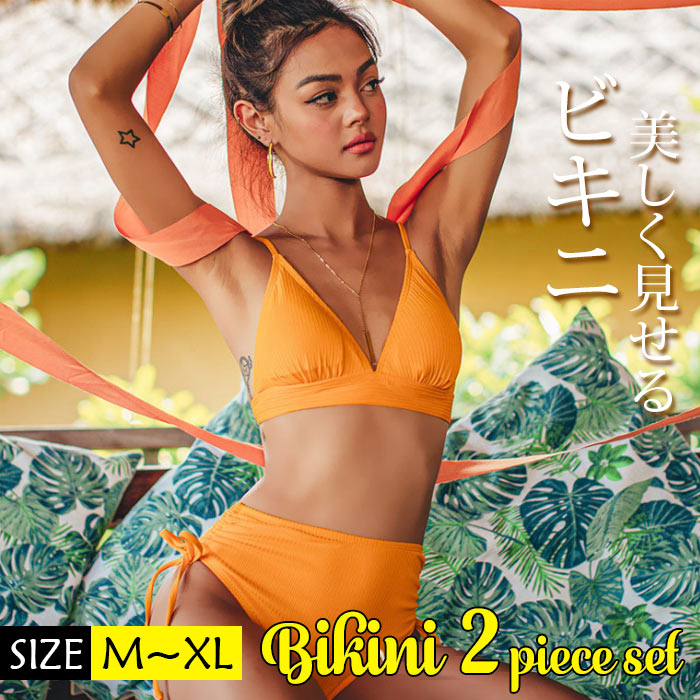 パット付き ワイヤーなしセクシービキニ サラサラツルツル感じる韓国水着ビキニ2点セットレディースファッション 水着