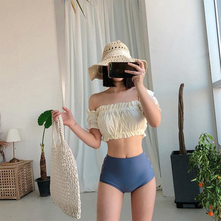 水着 ビキニ スイムウェア 体系カバー水着 セパレート 体系カバー レース ハイウエスト 胸元 盛れる セット 上下セット 2点セット かわいい 大人可愛い きれいめ セクシー シンプル カジュアル