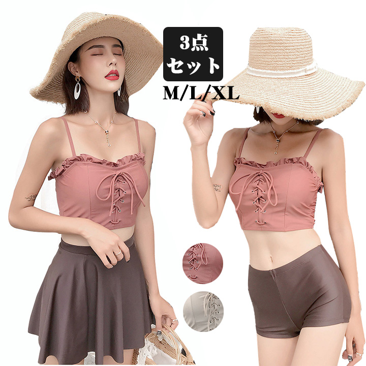 可愛い 韓国 水着 レディース タンキニ セパレート 3点セット スカート かわいい 露出控えめ 安全パンツ