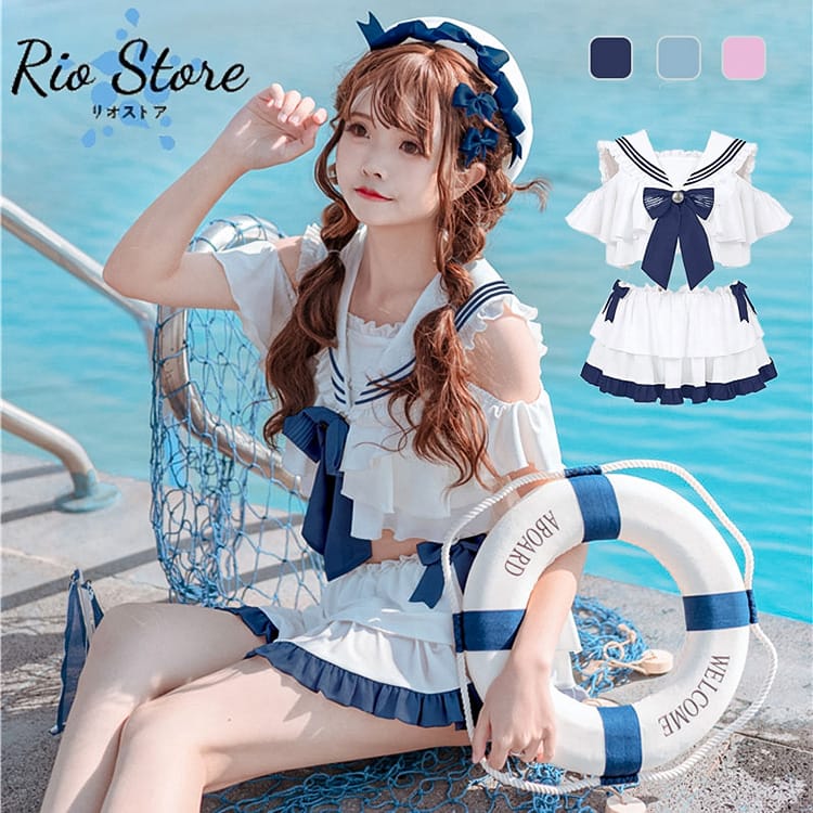 可愛い 水着 2点セット セーラ服水着 蝶ネクタイ 韓国風 盛れる JKレディースファッション 水着