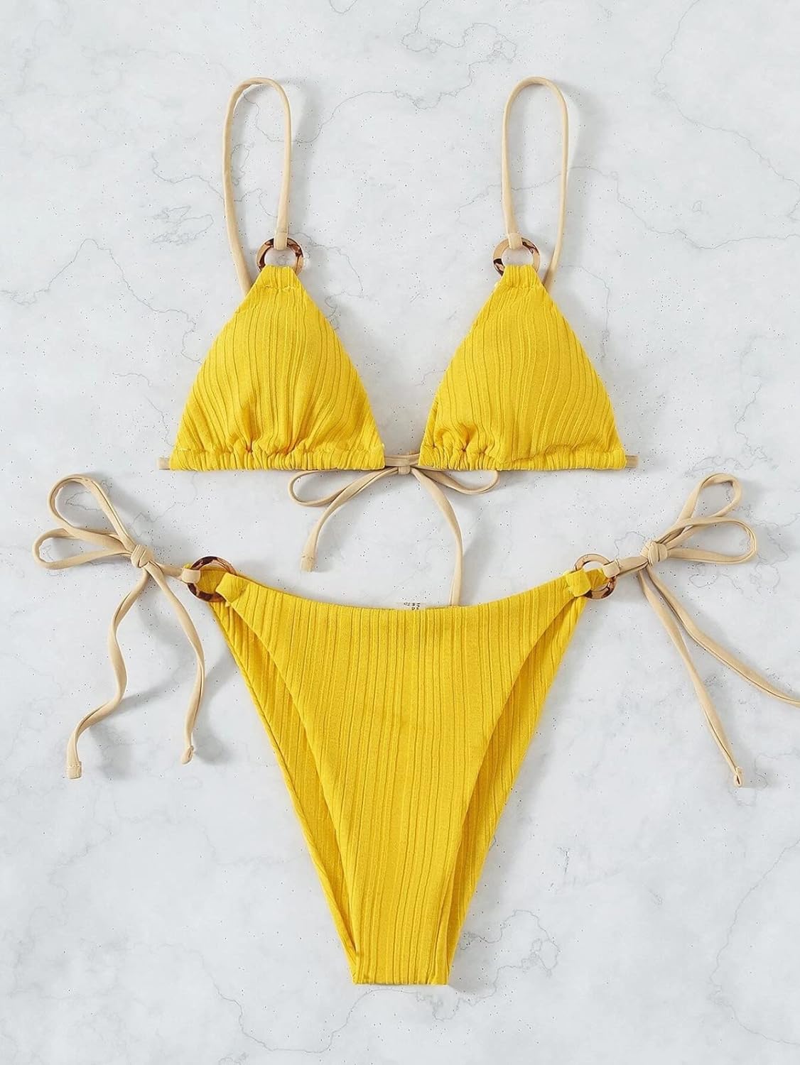 女性用水着ツーピース水着 レトロプッシュアップツーピースビーチウェア,ビキニスプリット水着、セクシーな無地のレースアップ水着、黄色