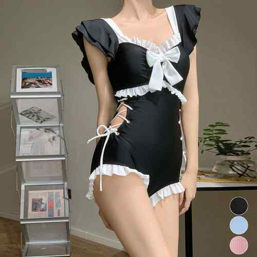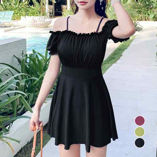 体型カバー オールインワンスイムウェア プール遊び 韓国水陸両用ミズギ 大人可愛いハイウエスト おしゃれ水着 露出控えめ 露出少なめ水着 海 フェミニン ミズギ 細見え水着 着やせ