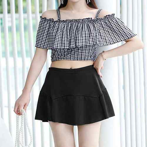 ギンガムチェック セパレート水着 レディース 露出控えめ ハイウエスト パンツ付きミニスカート 2点セット水着大人可愛い ビーチウェア海水浴 体型カバーみずぎ リゾート サマー海