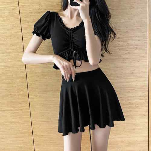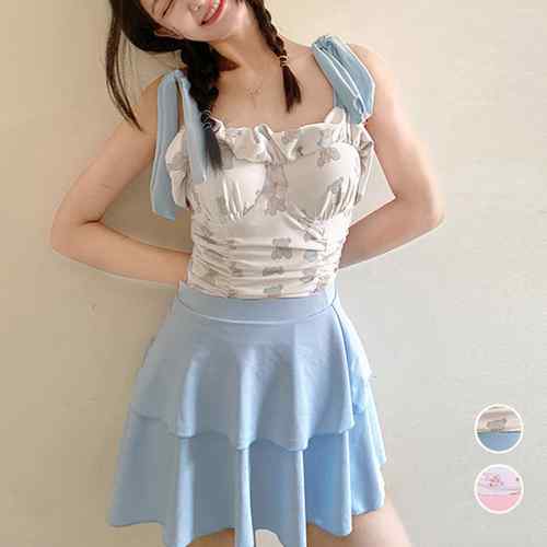 レースアップ水着2点セット 大人ガーリー セパレート水着 パンツ付きミニスカート 露出控えめビーチウェア 夏 海 海水浴 フリル水着スカート レースアップビキニ 可愛い 上下セット