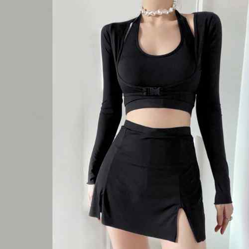 ホルターネック水着 クロスバンドゥビキニ 韓国風水着セット 長袖 ビキニスカート リゾート旅行 プール遊び ビーチ可愛い スイムウェアー 海 海水浴女の子ビキニ 水陸両用盛れる水着